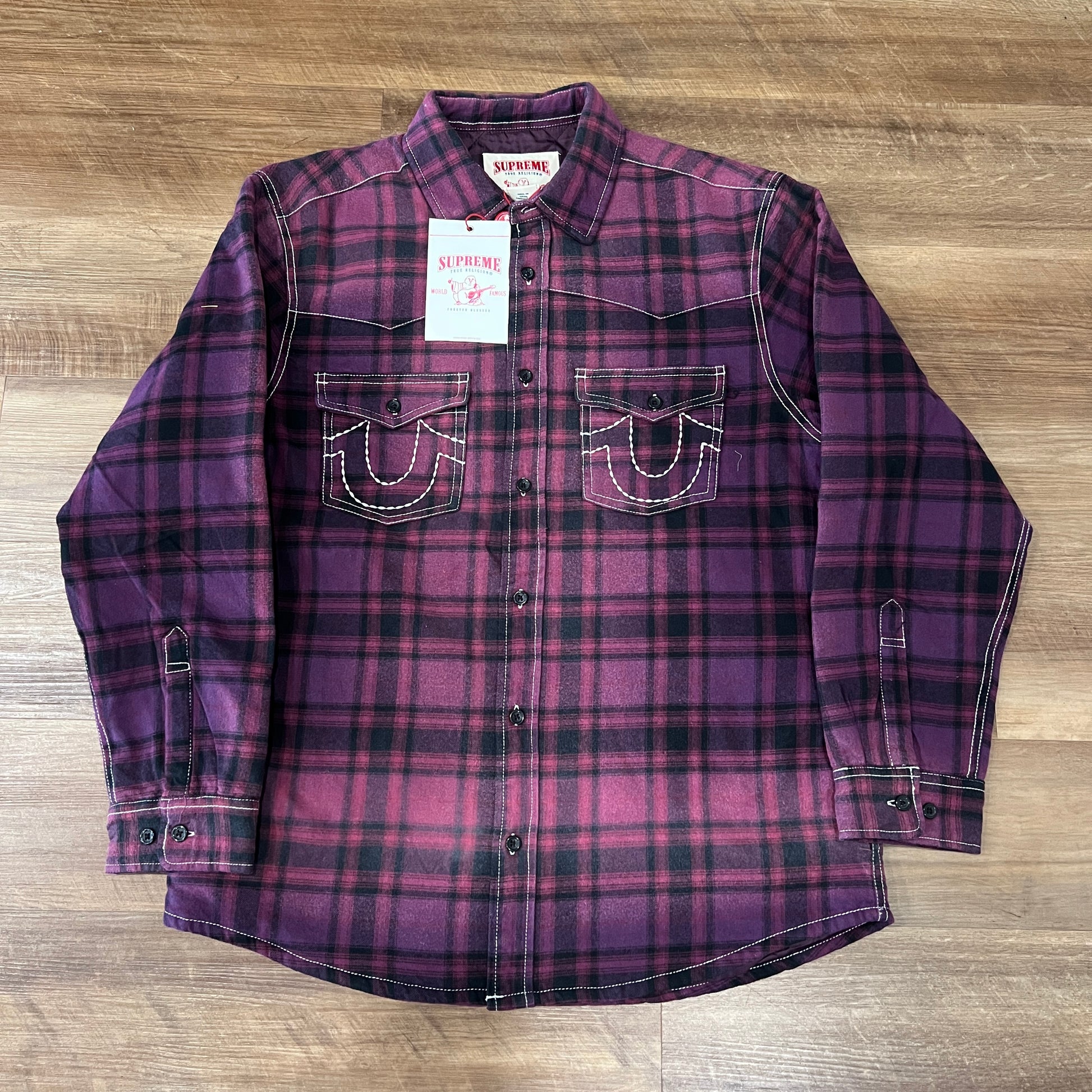 Supreme True Religion Quilted Lined Plaid Flannel Shirt Purple